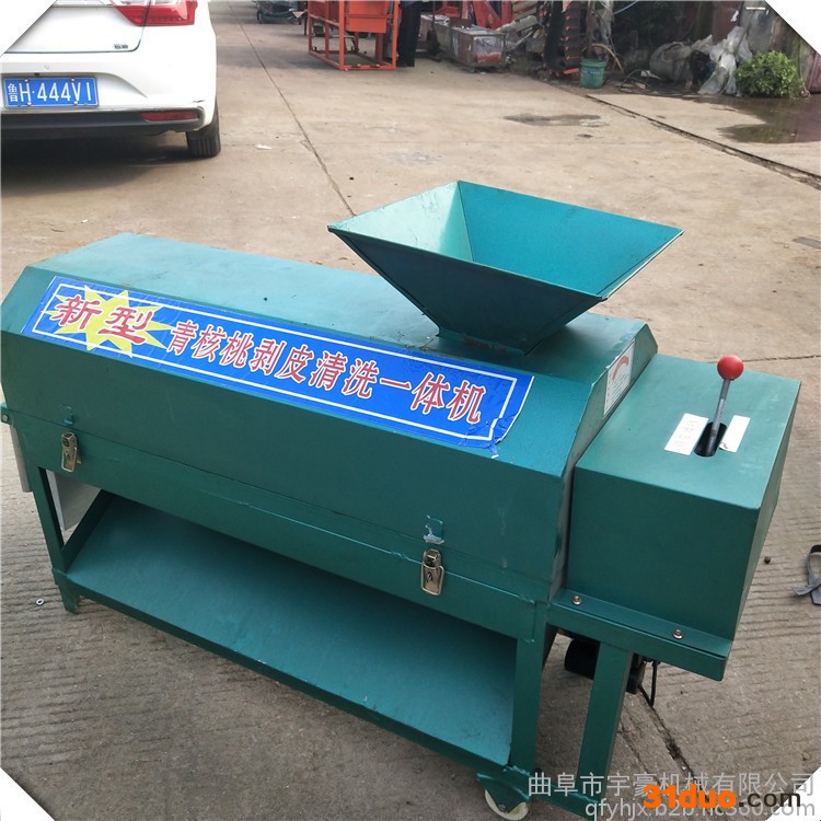 新型青核桃脱皮清洗机采用自由旋切剥皮,核桃进入旋切滚刀区,高速运转的滚刀开始切削青皮,核桃同时自由滚动使其各面被滚刀切削,脱净的核桃直径小不易被削到,不断的滚出旋切区,少量未削净的青皮被钢丝毛刷清除,干净的核桃滚出加工区,进入容器。新的核桃不断的喂入,剥净后被排出。隔栅和旋切滚刀之间的距离可以自动调节,还可以根据地区核桃的大小、青皮的薄厚通过加减垫片进行人工调整,以减少破壳率,提高脱净。
