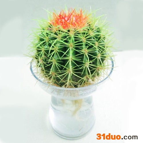 仙人球俗称草球,又名长盛球,为仙人科多年生肉质多浆草本植物。茎呈球形或椭圆形,绿色,花着生于纵棱刺丛中,仙人球开花一般在清晨或傍晚,持续时间几小时到**。仙人球是一种茎、叶、花均有较高观赏价值,它是水培花卉的艺术**。仙人球有吸收电磁辐射的作用,也是天然的空气清新器,还具有吸附尘土,净化空气的作用。 夏季至秋季开放的花。仙人掌的同类植物。茎像饭勺一样展开并向上生