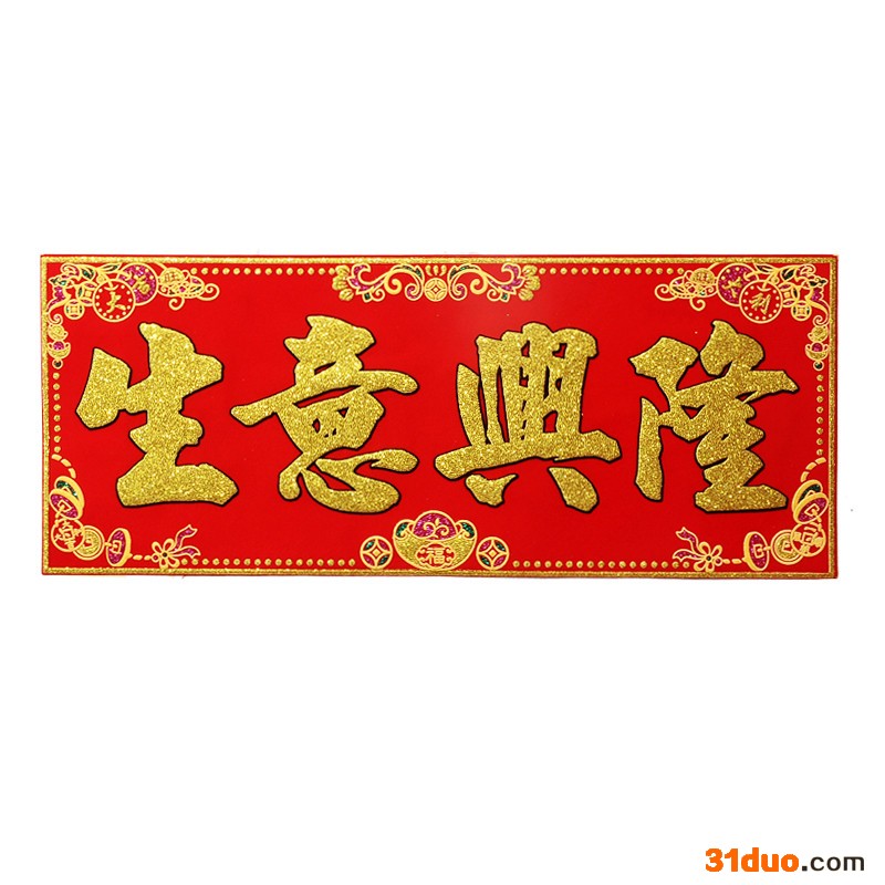 2020年画聚贯工厂重庆爆款绒布珲春横批生意兴隆对联便宜批发市场**