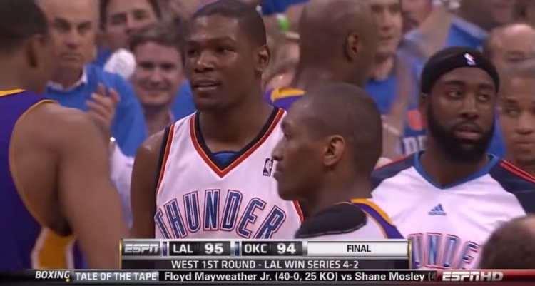 他才第一次带队打季后赛,就对上了巅峰科比率领的卫冕冠军。雷霆三少嫩得毛都没长齐,但他们坚持了六场,在俄城把湖人折腾得够呛,在G6的鏖战里倒在了最后一刻——终场哨音响起时,杜兰特难忍自己的泪水。