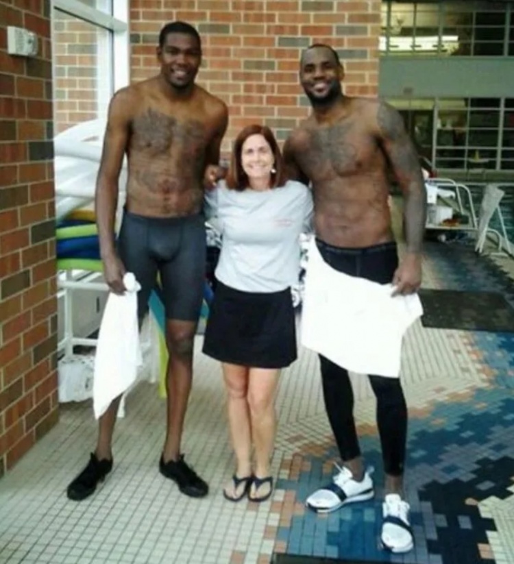 但他还是很笨拙。受勒布朗邀请,到阿克伦跟他一起训练,两人穿着泳裤亲密合影,时刻注意形象的勒布朗聪明地用毛巾挡住了自己的腿间,而他成了网友的笑料。(但他还是跟勒布朗在他的家乡合练不止一次。)