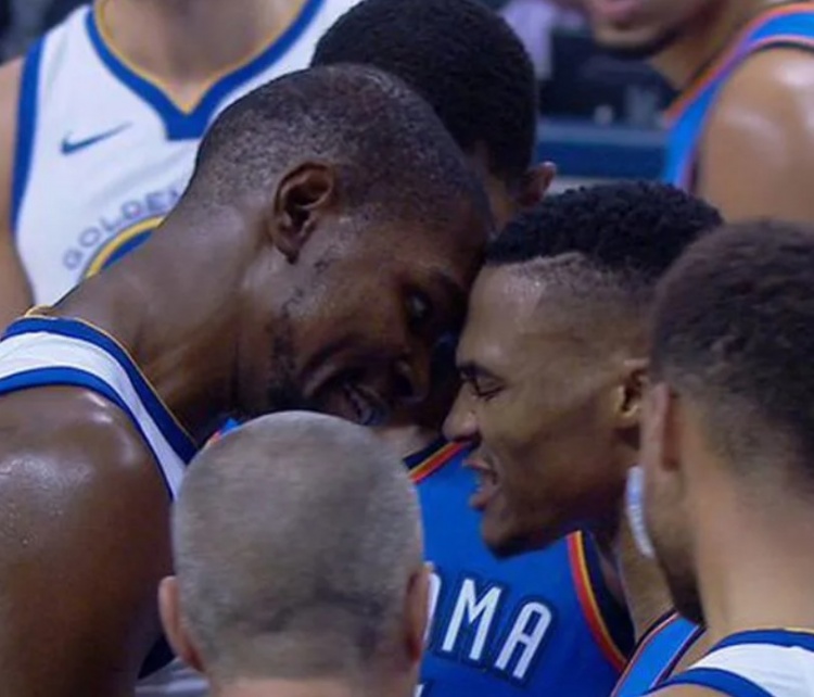也是在这一年夏天,雷霆送走了他的好朋友詹姆斯-哈登。哈登在被交易当晚以泪洗面,杜兰特则缄口不言,沉默地度过了一个又一个夏天。