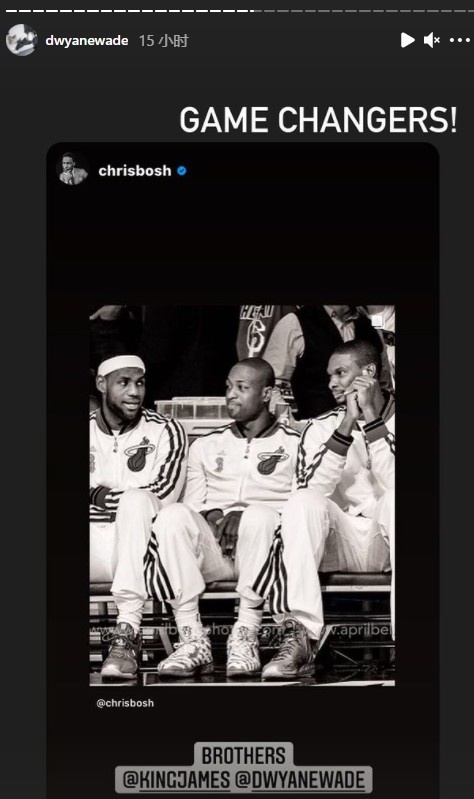 詹姆斯和韦德分别在社媒转发了这张照片,詹姆斯配文写道:“没有错!”韦德配文写道:“改变比赛的三兄弟。”