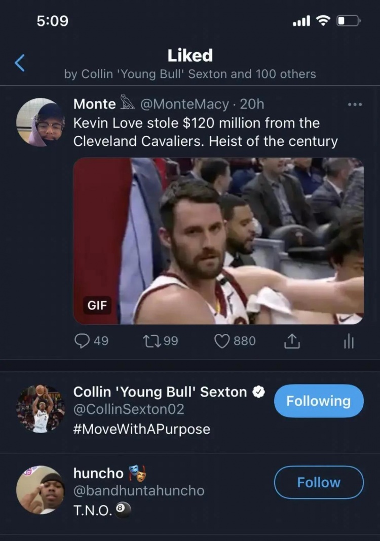 乐福的队友早就看他不顺眼了。一位用户名为MonteMacy的推特网友在本赛季发推写道:“乐福从克利夫兰骑士队偷走了1.2亿美元,世纪大盗。”塞克斯顿点赞了这一推特,尽管不久后他取消了点赞,还是被手快的网友截图。