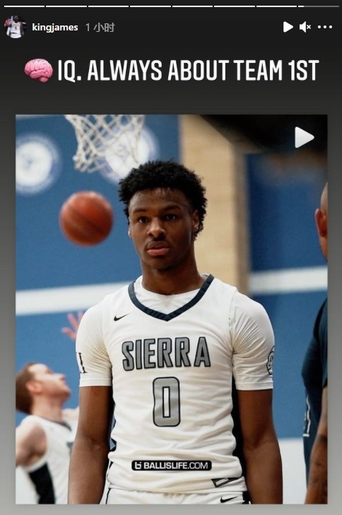 直播吧9月7日讯今日,美媒Ballislife晒出了一段詹姆斯大儿子布朗尼的赛场集锦发问:“你最喜欢布朗尼比赛的哪一点?”詹姆斯转发了这段集锦并配文说到:“篮球智商!总是把团队放在第一位!”(逮虾户)
