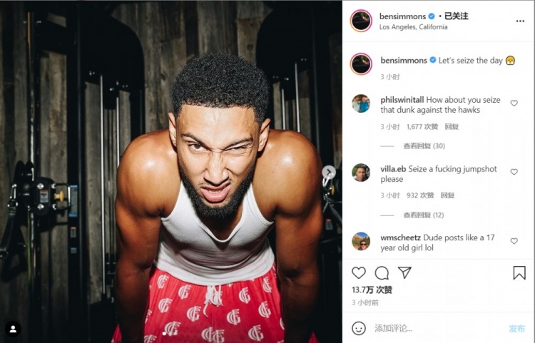 9月8日讯 今日,76人球员西蒙斯在个人社媒上晒出了自己的训练照,配文道:去利用好每一天的时间