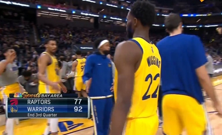 比赛前三节,勇士的“水花兄弟”手感不错,维金斯三分球7中6、普尔三分球9中6,帮助球队领先猛龙;