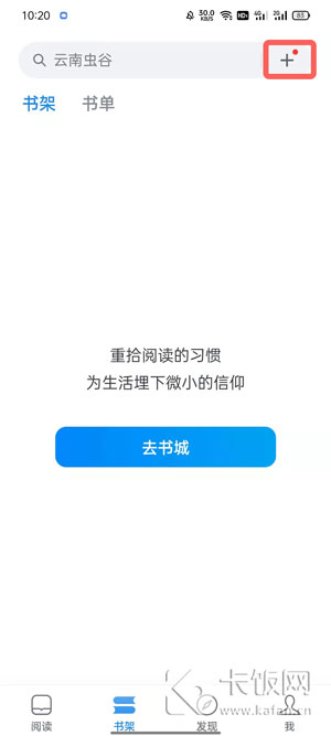 2、然后在书架的右上角,点击搜索框右侧的【+】按钮;