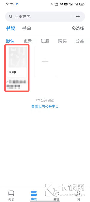 5、等待文件导入完成,即可在你的书架中阅读该书籍;
