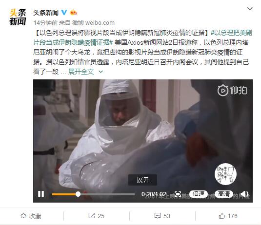 4月3日讯美国Axios新闻网站2日报道称,以色列总理内塔尼亚胡闹了个大乌龙,竟把虚构的影视片段当成伊朗隐瞒新冠肺炎疫情的证据。