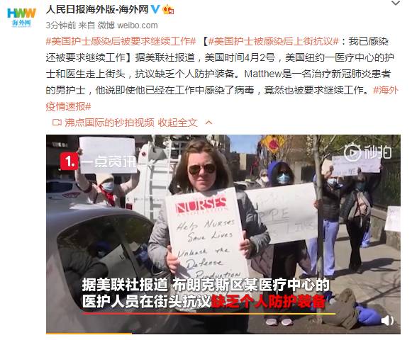 美国护士被感染后上街抗议:我已感染 还被要求继续工作2020-04-03 14:45:14 海外网4月3日讯据美联社报道,美国时间4月2号,美国