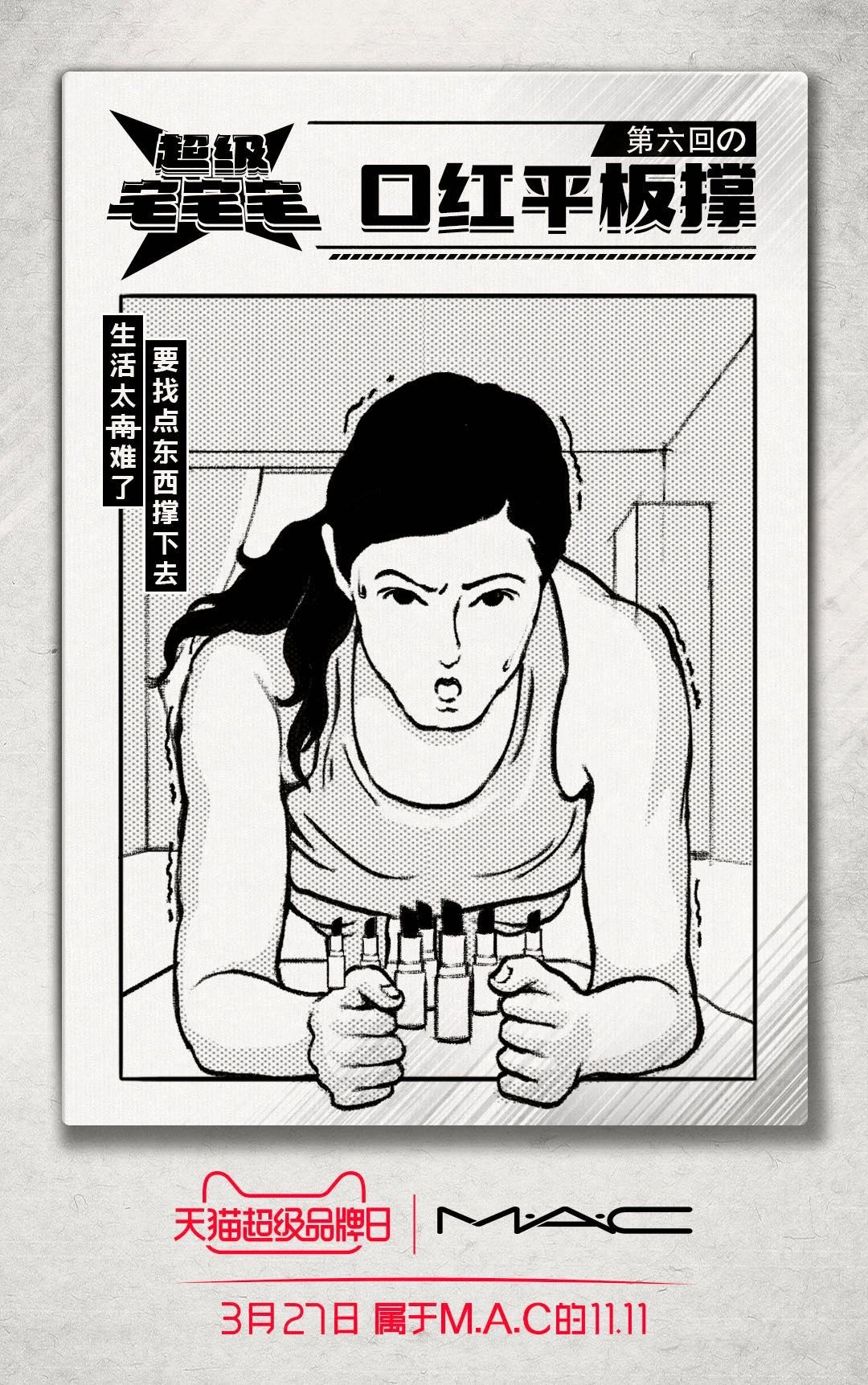 “超级宅宅宅”营销事件中,M.A.C 平板支撑这一话题就让人觉得很有新意。疫情期间健身房都关门了,在家健身风靡,人们对着健身App或者视频打卡燃烧卡路里,一夜之间健身环成了具有投资价值的神器,抖音上最火的视频是让女朋友或者男朋友躺地上做品牌支撑虐狗,单身汪或者疫情期不能出门见对象的女生,则可将M.A.C 的口红粉底液放在地上来做平板支撑。平板支撑让人身体更健康、体型更完美,M.A.C作为全球专业艺术彩妆品牌同样是让人更美。而且,女生可以没有男朋友陪着做平板支撑,但不能没有钟爱的口红,后者可能比男朋友更可靠一些。品牌更美、陪伴、贴心诸多内涵,一下就跟健身这一场景紧密联系在一起。