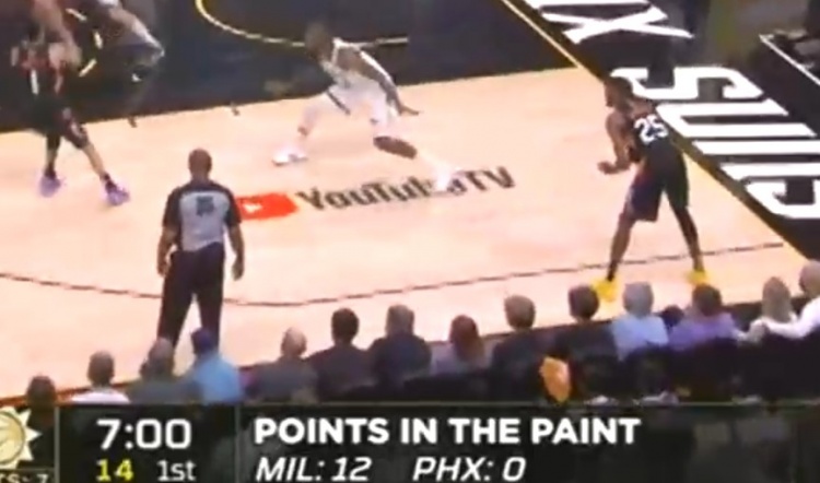 比赛开局,雄鹿猛攻篮下,太阳则主打外线,首节前5分钟,雄鹿的内线得分是12比0!