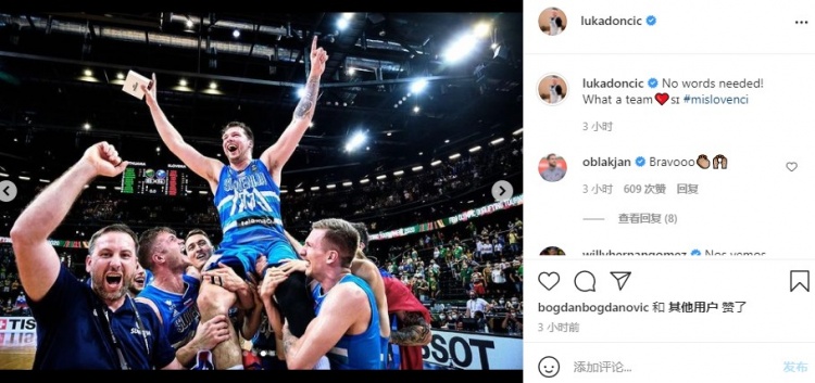 本场比赛,东契奇砍下31分11篮板13助攻,率队取胜。赛后,东契奇更新个人社媒晒出了和队友的庆祝合照并配文说到:“无需多言!多棒的队伍啊!❤️”