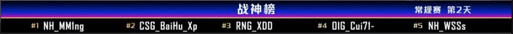NH和NEXT分别拿下两连鸡分列一二位,其次为OIG、RNG、CSG。