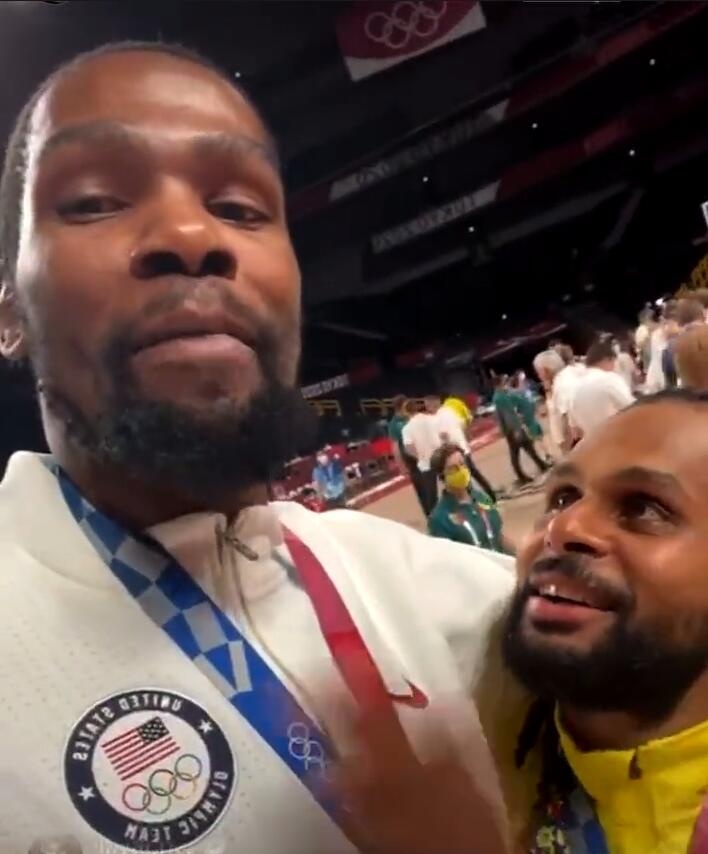 8月8日讯在昨日的东京奥运男篮颁奖典礼结束之后,杜兰特与新队友米尔斯交谈,并在直播中喊话:“今年凯尔特人将会遇到麻烦。”