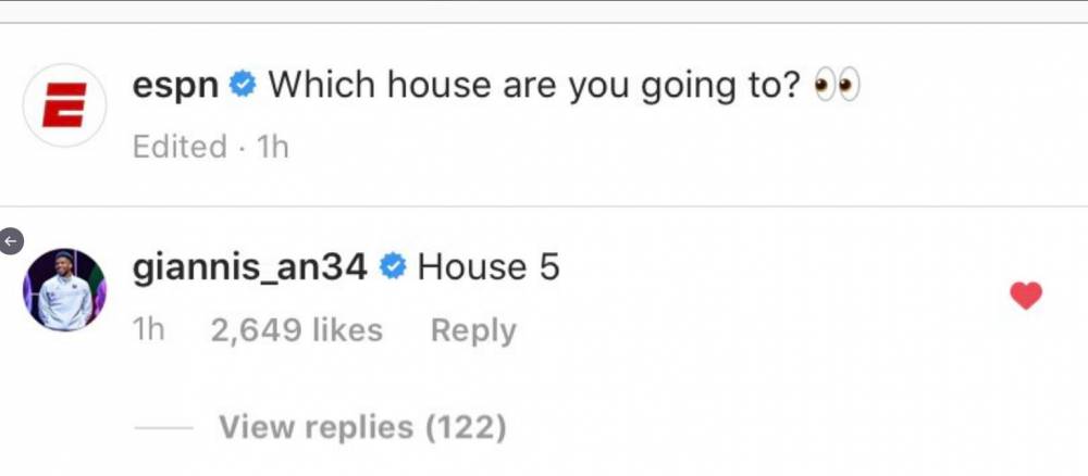 雄鹿球星字母哥在下方回复道:“房间5。”