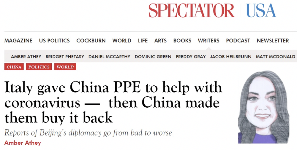 当地时间5日,一则耸人听闻的消息在意大利社交媒体上流传:英国《旁观者》杂志美国版网站刊文称“意大利曾向中国捐赠防疫物资,现在中国让他们买回去”。