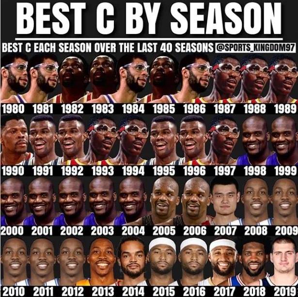 2007年:姚明;2008-2013年:霍华德;2014年:诺阿;2015/16/17年:考辛斯;2018年:恩比德;2019年:约基奇。