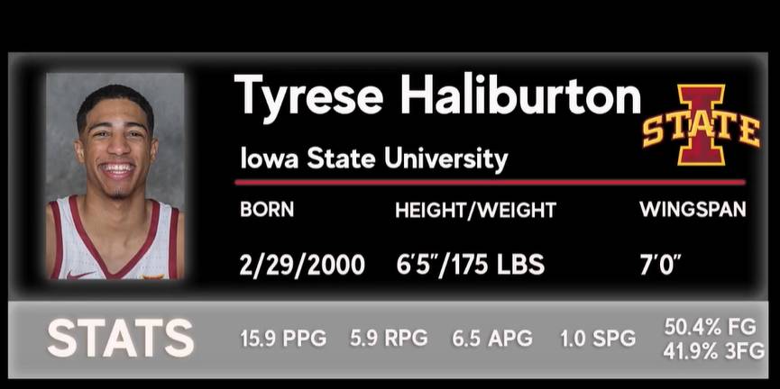 第三位:泰瑞斯-哈利伯顿,6尺5寸,20岁,大二,来自爱荷华州立大学