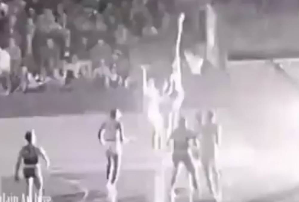 4月9日讯 近日美媒《Hoops Place》晒出一段视频,视频中传奇球星张伯伦跨一步后高高跃起帽掉对手的投篮,而当年的摄影特写显示张伯伦的起跳高度已接近篮板上沿。