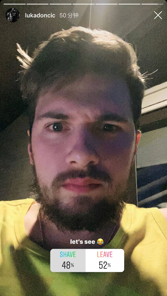东契奇晒出了自己的自拍,并向球迷们提问:“我这个胡子是剪还是不剪?”