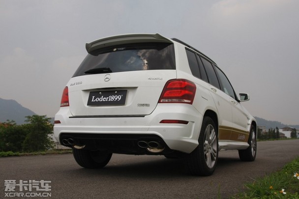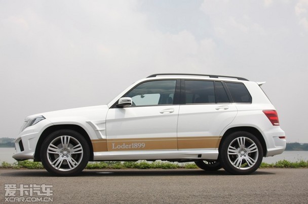 奔驰GLK300的这套Loder1899空气动力套件一改GLK的内敛绅士风格,尽显凶猛气势。 宽大的前扰流板,是空气套件改装的醒目标识,前倾造型设计,营造风驰电骋的速度感。大嘴式进气格栅,大大提升进气量,减小风阻。竖排日行灯,令前脸科技感倍增。