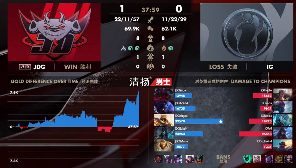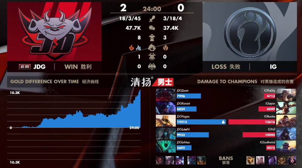 4月9日讯 LPL春季赛第六周第四个比赛日,最后一场比赛将由IG迎战JDG。目前IG十胜一负高居积分榜榜首,JDG八胜四负位列第四位。