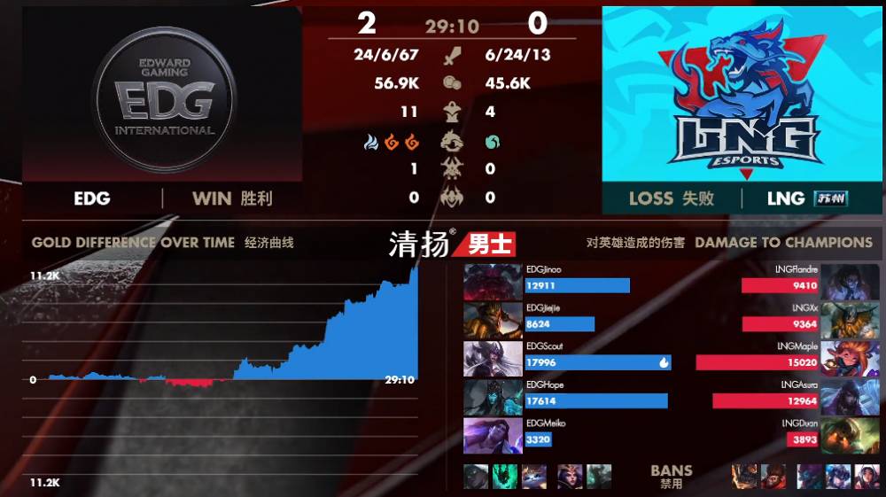 4月9日讯 LPL春季赛第六周的第四个比赛日,第二场比赛由LNG对阵EDG。目前EDG战绩七胜四负,而LNG则是四胜八负已经遭遇了六连败。