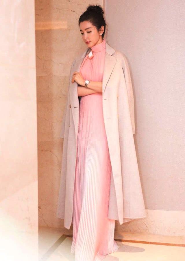 李冰冰的裙子采用的是薄纱材质,以及百褶设计,让裙子看起来比较有垂感,也就更贴合身形,衬得身材更加窈窕!她还外披了一件呢子外套,显得整个人都更加大气!