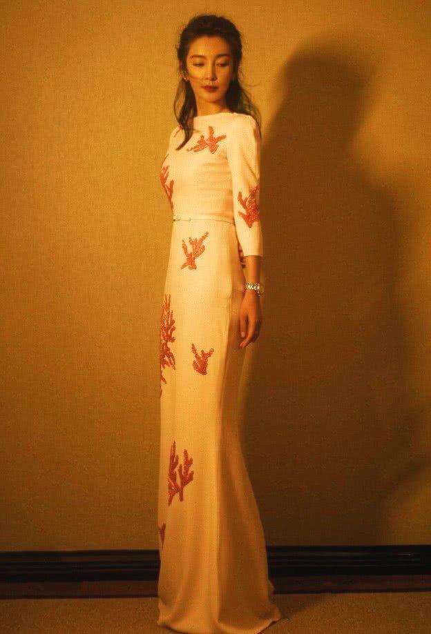 李冰冰上面的粉色造型比较有少女感,而这次的就更显端庄优雅,修身的款式,修饰了身形的曲线美,衬出玲珑有致的好身材,而衣领的位置还采用了亮片装饰,看起来一闪一闪的,让人眼前一亮!
