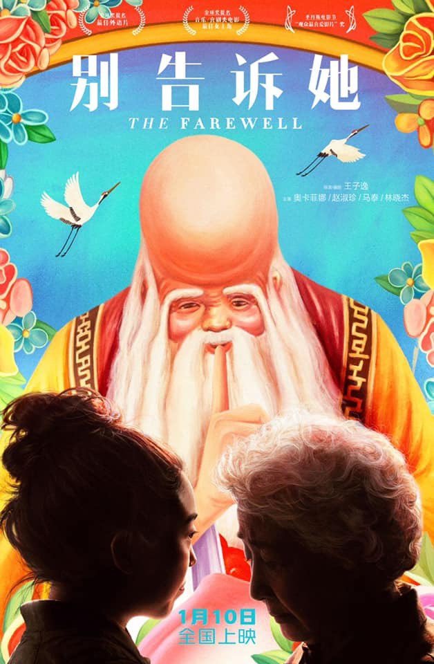 《别告诉她》根据真实故事改编,讲述了一个华人家庭中,奶奶罹患癌症,但家人选择隐瞒奶奶,假借一场婚礼的名义让所有家人回家见奶奶最后一面的故事。影片定于1月10日在中国大陆上映。