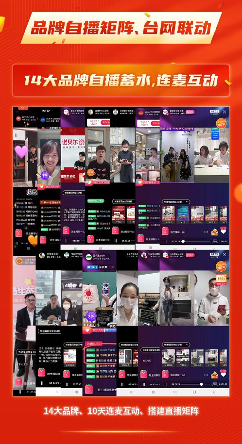 5、 连麦PK新玩法,提高直播新乐趣:家装行业人群低频、关注度低、而且直播间介绍手法单一,粉丝停留时间短。这也是家装行业的痛点和短板。本次家装品牌联盟中加入了连麦PK玩法,相较单调的人气PK和种草PK,本次联盟品牌连麦创意满满,其中为代表的是森鹰铝包木窗,以《生僻字》等网红歌曲、rap等热门形式进行互动,互动期间在线观看人数达到最高峰。除了主播的才艺表演,更为连麦加分、也进一步点燃直播间的玩法不得不提技术性“商业互夸”森鹰铝包木窗主播为三棵树打call:“祖国山水美如树,人人都用三棵树。”洗脑押韵的同时,也很好地传递了三棵树漆健康、环保的特性。三棵树主播则强推森鹰铝包木窗强大的隔音效果:“用森鹰铝包木窗,我在家和朋友喝酒蹦迪,打扰到邻居算我输好不好?”将连麦与品牌更深度、巧妙、有趣的结合,进一步进行心智植入的同时,也更大程度调动直播间粉丝的热情、双方粉丝也有更良性的流动,同时由于品类互补,以亿田为例,亿田电商负责人表示,在连麦的过程中直播的成交也创了新高。