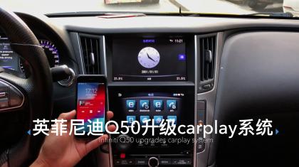 升级这个CarPlay系统可以保留英菲尼迪Q50原车系统,原车屏幕的,不用更换主机,不用更换屏幕,通过加装一个模块就可以升级了。