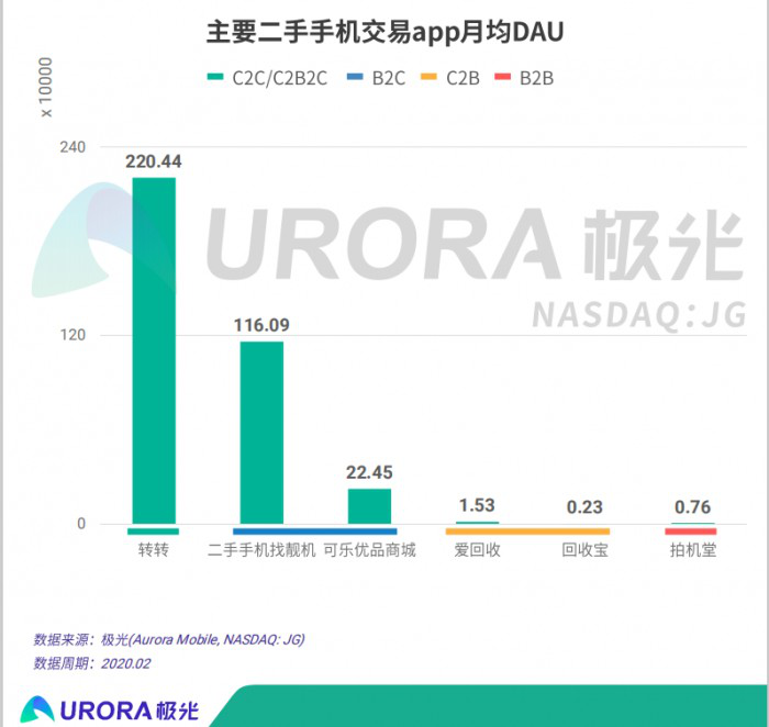 报告同时还指出,二手手机市场的用户规模已经超过千万,并且线上化的发展空间巨大。在2020年2月期间,用户人均安装二手手机交易APP1.09个,其中B2C代表企业找靓机新增用户8.79万领跑二手B2C行业,实现了逆势增长。