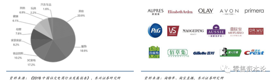根据艾瑞咨询,在产业链上游品牌商中,美妆、服饰和3C 家电品类的服务品牌数量占比位居前三,2019年分别占比达到了 20.9%、18.9%、17.2%。