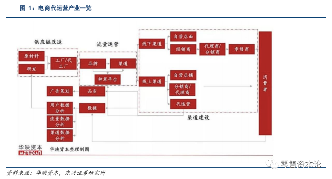(1)从价值创造角度看,过去电商代运营产业本身并不创造价值,赚取的是线上营销费用的一部分,通过供应链改造、渠道运营、仓储物流和助力品牌宣传等行为达到有效的资源配置,瓜分产业链整体的利润空间(客户主要集中在美妆、母婴等利润率和渠道费用较高的产业),可以被视为是一种费率再分配。