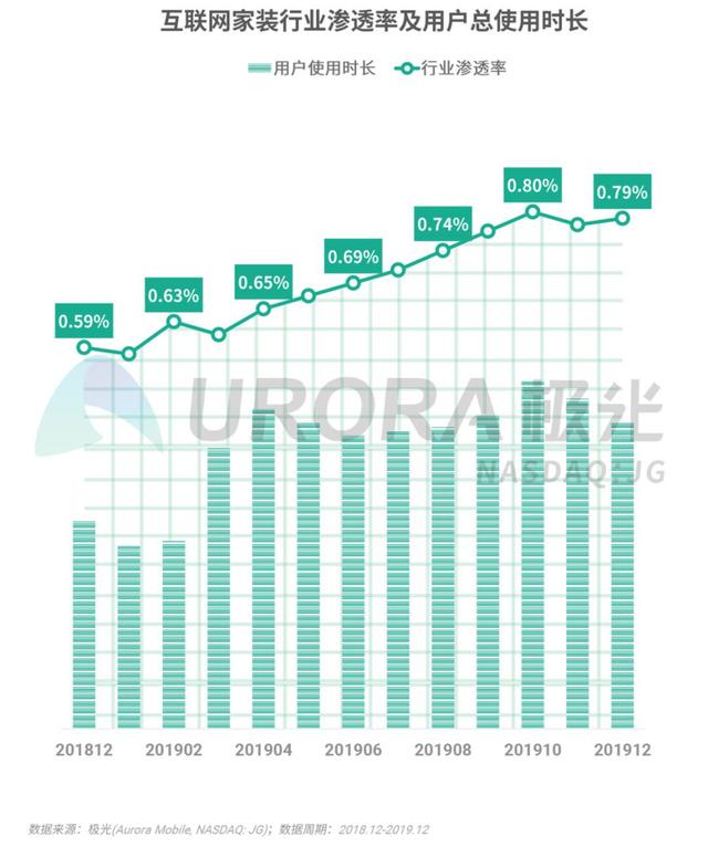 虽然在2018-2019年间,互联网家装行业面临着激烈的洗牌震荡,关闭潮、跑路的,各种负面消息似乎在指向这个行业的落寞,但这绝非行业的全貌。从极光的统计数据来看,行业未来依然可期——《2019年Q4移动互联网行业数据研究报告》显示,Q4互联网家装行业的市场渗透率同比增长超3成,达到33.9%,而且用户总使用时长也显著提升。