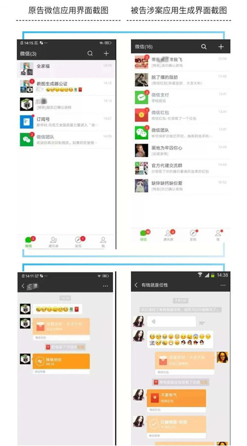 上述界面中包含与两原告享有权利的“微信表情、微信支付图标、微信红包详情页、微信红包气泡、微信图标”完全相同或仅有细微差别的图案。