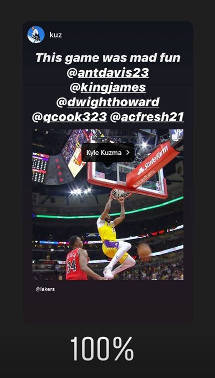 “@勒布朗-詹姆斯 状态火热。”库兹马写道。