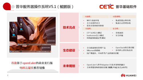 生态完善:普华服务器操作系统(鲲鹏版)与上下游厂商进行了广泛的兼容适配工作,可支持市面上主流的国产数据库、中间件等产品,比如人大金仓数据库,金蝶中间件等,充分满足了国产化替代的要求。同时,完成了自研虚拟化产品VMServer的迁移,其功能、性能可完全对标X86平台的商业产品。在电科集团的支持下,已将产品实际部署于电科云,完成了OpenStack的迁移适配和实施,基于openEuler LTS的普华服务器操作系统鲲鹏版成为电科云最佳推荐镜像。