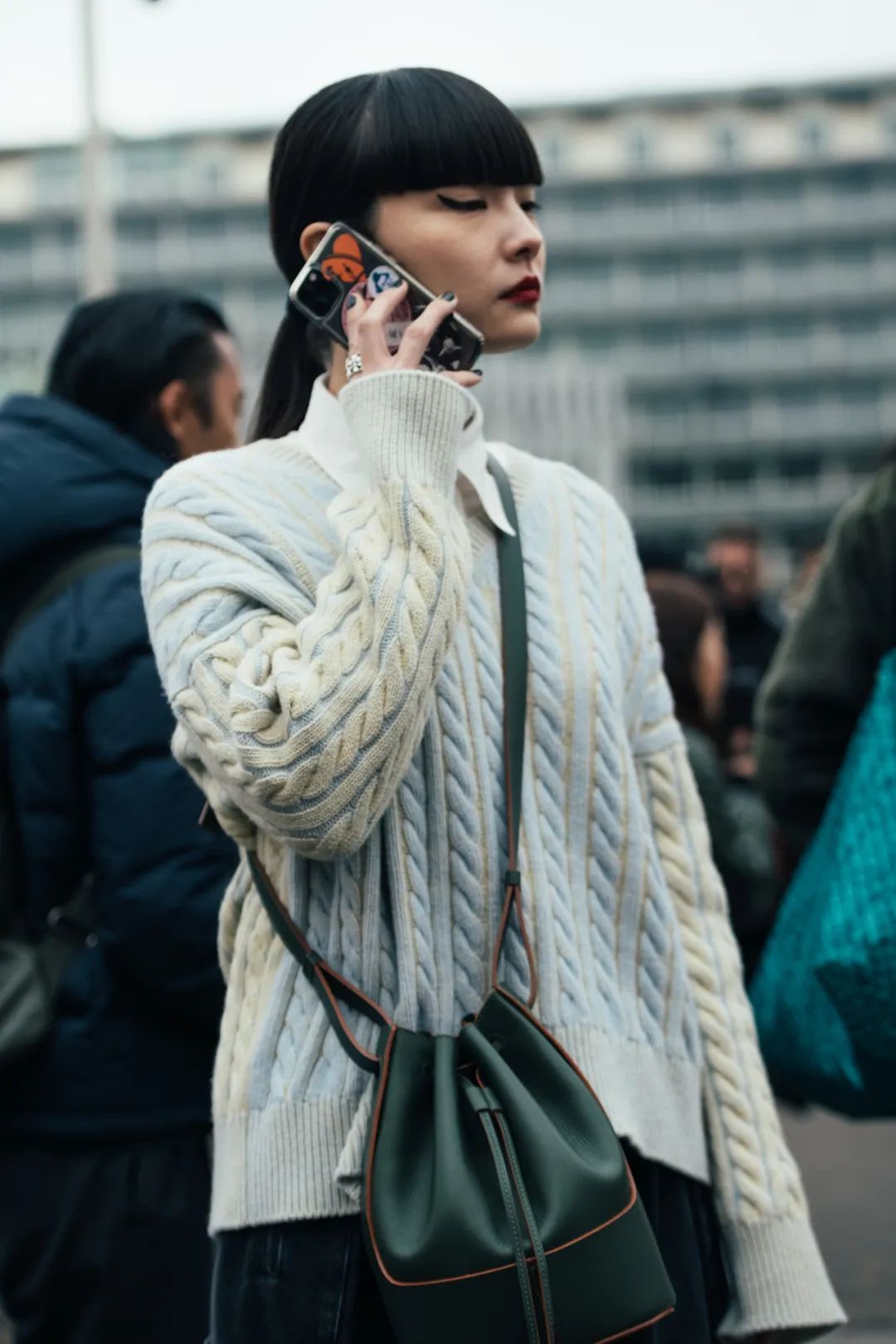 墨绿色天生自带一种独特而又复古的色调,搭配起毛衣,就别有一番韵味。事实上,这个色调同样百搭,即便是遇上再简单的look,也能够增添不少高级奢华的质感。