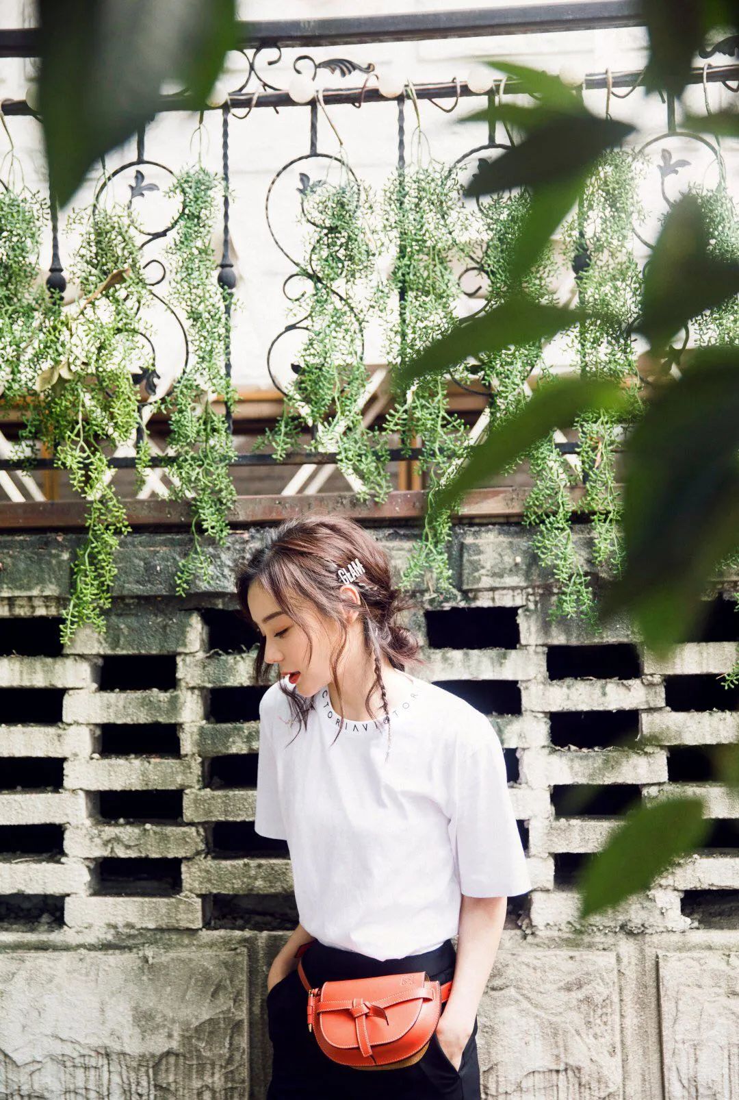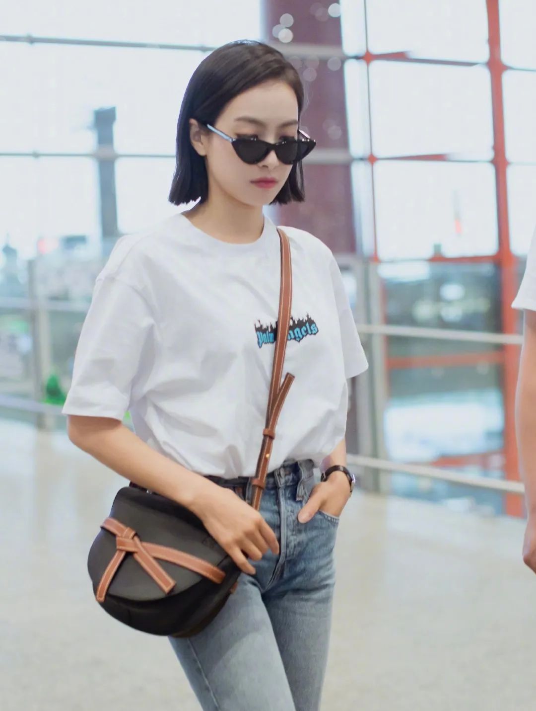 宋茜的白T+牛仔,清爽无比。而LOEWE Gate Bumbag的加入,立刻给整套look融入了一些高级的质感。灵动的棕色绳结,更是衬托出她的少女气息。