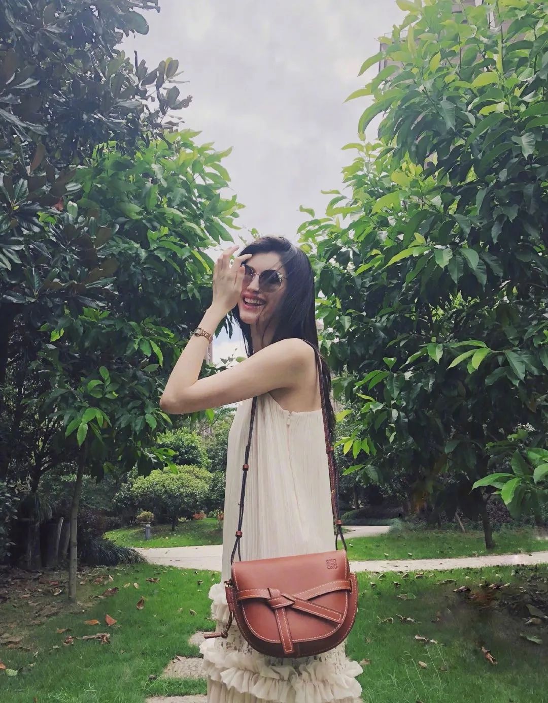 不得不说,LOEWE Gate是百搭的,即便是搭配柔美的纱裙,也能以其柔软的质感完美地与其融为一体,衬托出何穗甜美的一面。