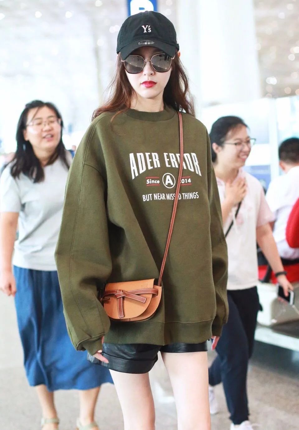 唐嫣的焦糖色LOEWE Mini Gate手袋,也是最点睛的一笔。墨绿色的卫衣与温柔的焦糖色,更是衬托出她独有的甜美和温柔。