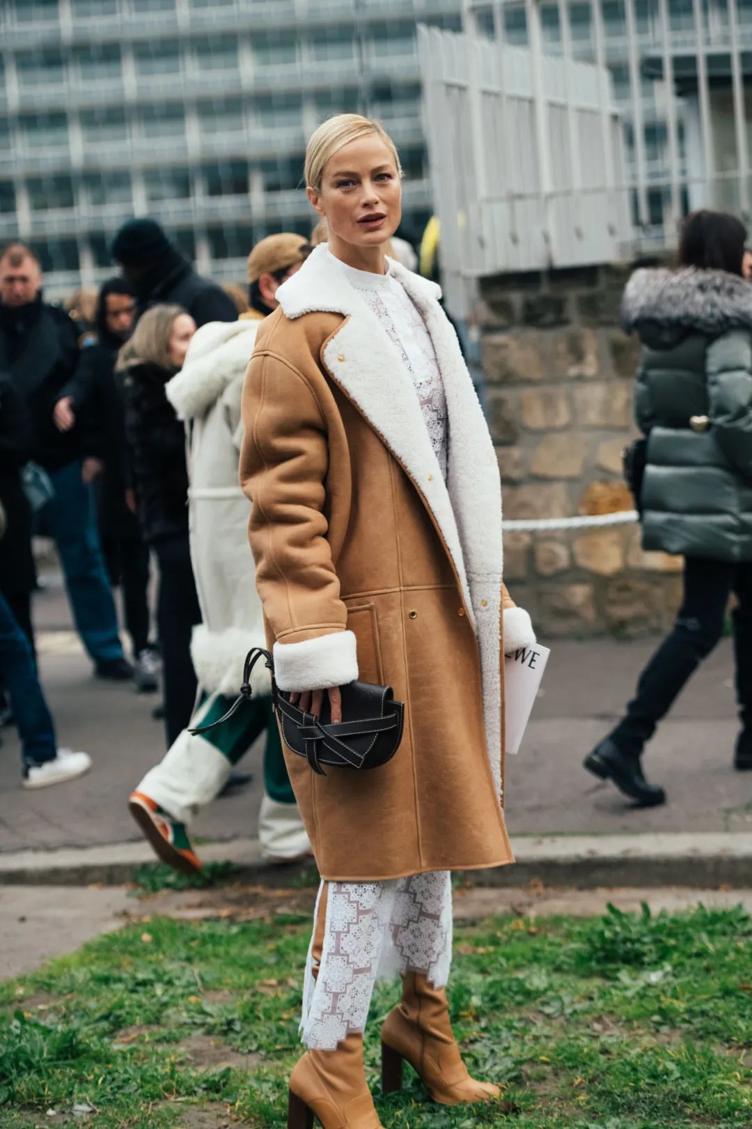 除了女明星们的倾力演绎之外,时装周秀场外的潮人们,也纷纷演绎了这款LOEWE Gate手袋。这位潮人借由黑色手袋点缀了棕色系的大衣,为整体look增添了几分质感,也集中了视线,成为时髦焦点的所在。
