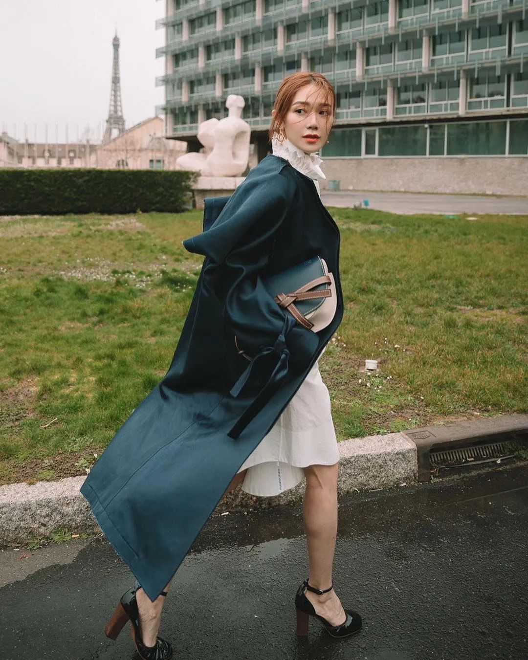 经典场面里,LOEWE Gate Bumbag斜挎手袋相当加分!跟男友风西装外套完美融合,蝴蝶结式绑带更是添了不少萌点。而斜挎包正好位于腋下腰间刚刚好的高度,既提升了视线的落点,还能收紧整套look,绝对是心机穿搭必备。