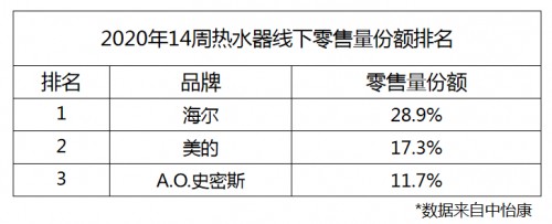 从最新的周报数据来看,销量前三的头部品牌海尔、美的、A.O.史密斯,市场份额分别达到了28.9%、17.3%、11.7%,三品牌之和超过整体市场一半。