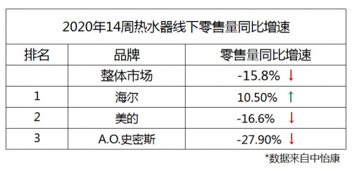 4月8日,中怡康发布了2020年第14周热水器线周相比,行业整体增速有所回落,零售量环比增速下降35.7%、同比增速下降15.8%。