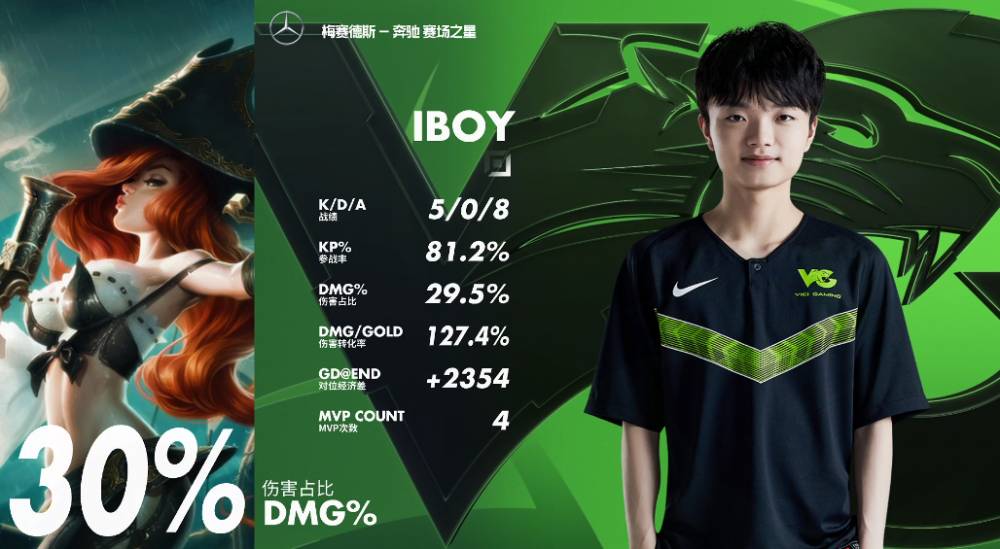 【24:55】在野区皇子排视野被妖姬留住,配合洛、雷克赛将皇子收掉,随后高地下双方开团,女枪、女坦两人被击杀,VG破掉中路高地;